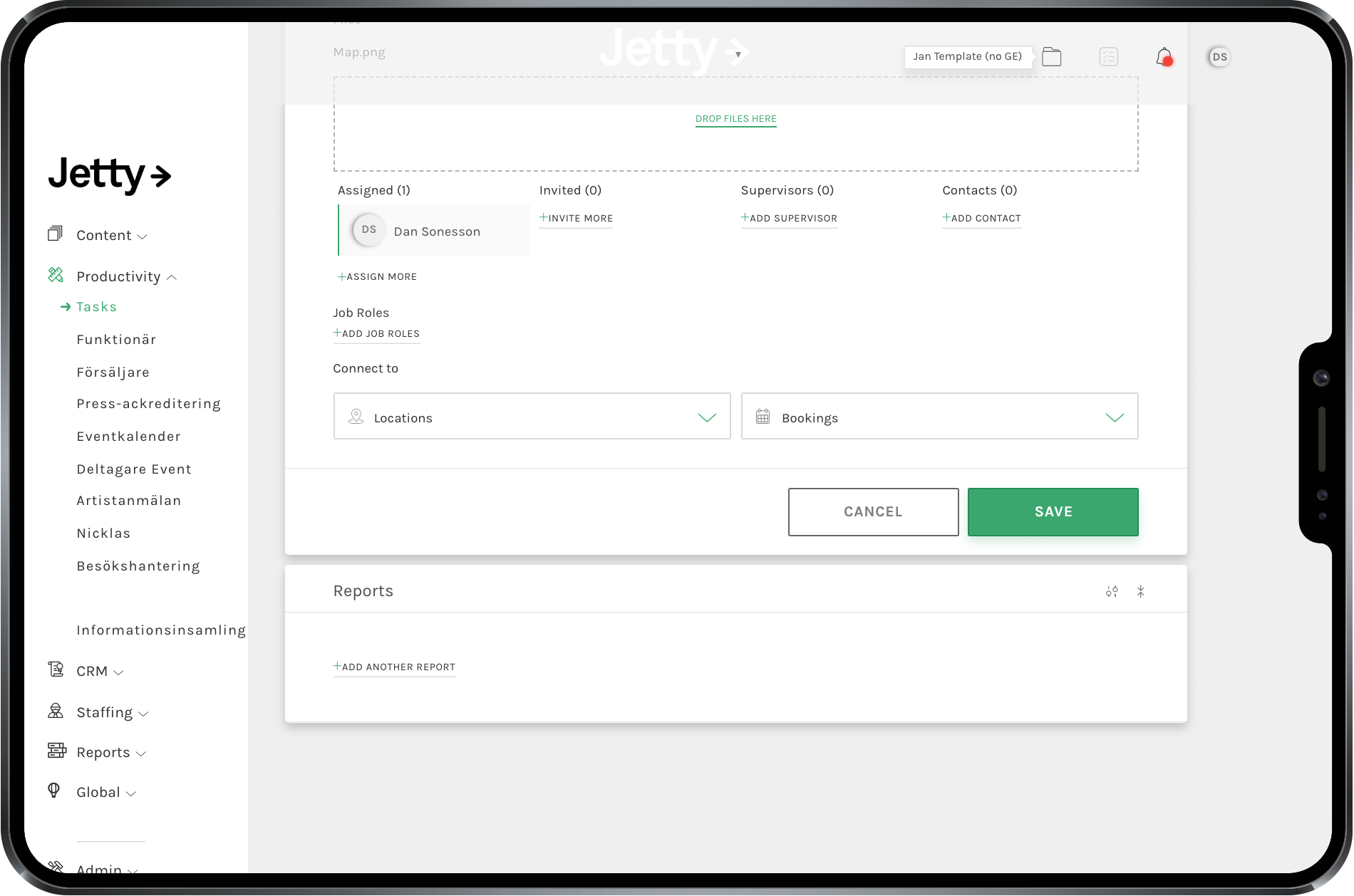 The built in workflows in Jetty contain a place for everything. Combined with powerful tagging and search features, it’s very easy to get the information you need. With everything in Jetty, you can avoid having to browse through spreadsheets or sort through hierarchies. This will help to ensure that nothing is overlooked or forgotten. Getting the overview in Jetty will prevent you from spending time worrying if things have been finished or requiring constant updates from your colleagues.